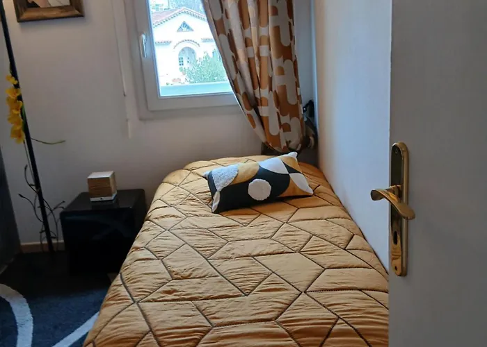 Situado en el barrio Carnot de Cannes, el apartamento se encuentra a unos 2 km del centro de la ciudad. El Palacio de Festivales y Congresos de Cannes está a alrededor de 20 minutos caminando de la habitación en una casa particular y el aeropuerto Internacional de Niza-Costa Azul está a menos de 25 minutos en coche. La Boulangerie par Jean Luc Pelé con comida francesa espera a los huéspedes a unos 300 metros de distancia.