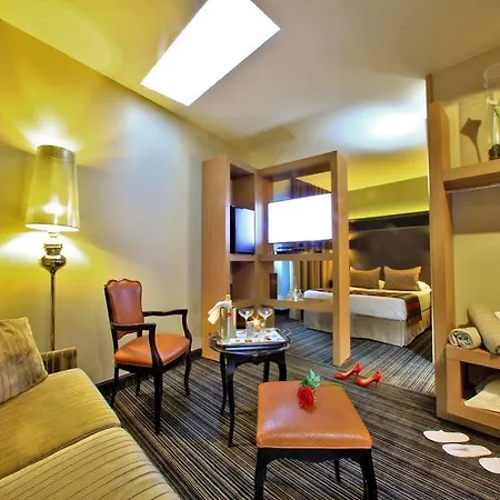 There are 32 comfortable rooms at the Plaza Madeleine & Spa, some of them have soundproof windows, and modern facilities such as a flat-screen TV with satellite channels and Wi-Fi. Guests can also use a hot tub and a sauna, along with such amenities as a hair dryer and bathrobes. Certain units have views of the city.